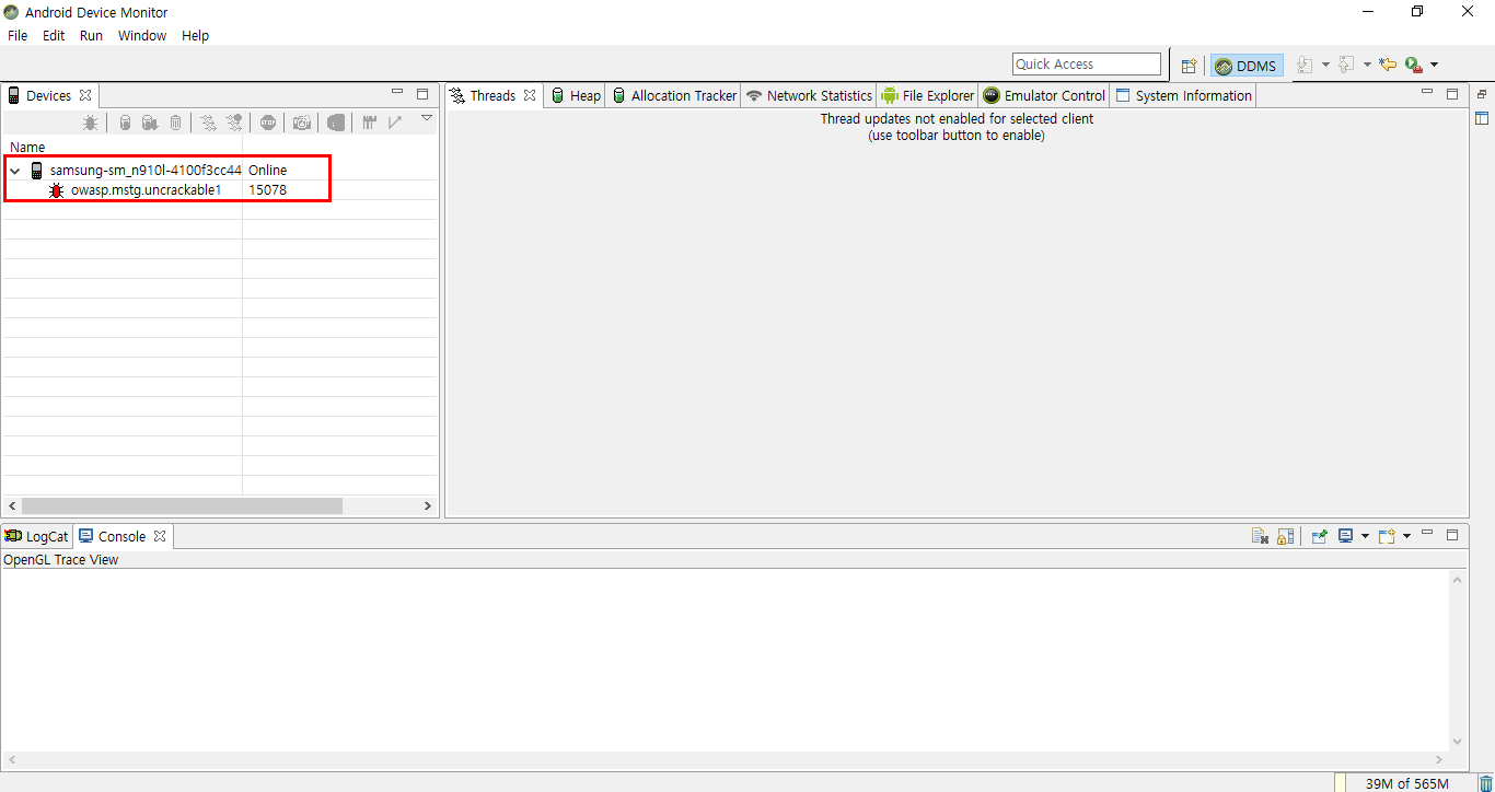 또, 디버깅할 앱 선택에서 디버깅을 희망하는 App을 선택한다.