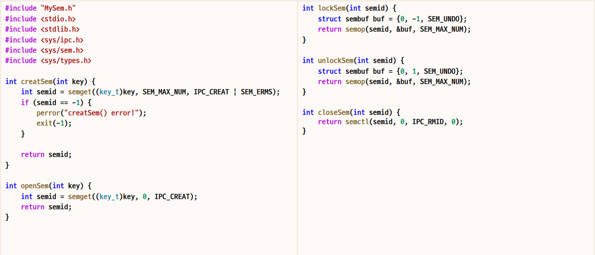 - semid : semget을 통해 생성된 semaphore을 구별하기 위한 반환값.