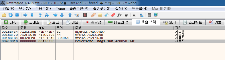그리고 콜스택을 통해 어느 함수 호출을 통해 이 Nag 창이 띄워졌는지 확인할 수 있다.