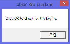 우선 Hooking에 사용할 EXE파일은 crackme3.exe 파일이다. KeyFile의 존재여부에 따라 MessageBoxA API를 통해 메세지박스를 띄워주는 실행파일이다.