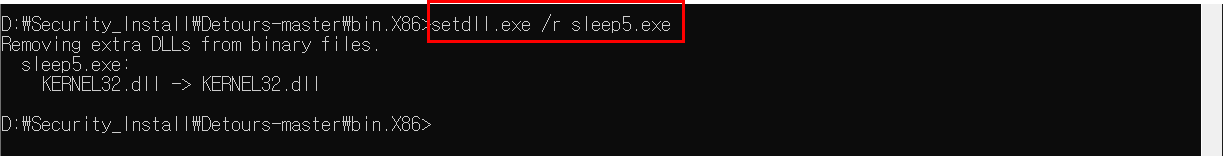 해당 EXE파일에 주입되어있는 DLL을 다시 제거하는 명령어는 아래와 같다.