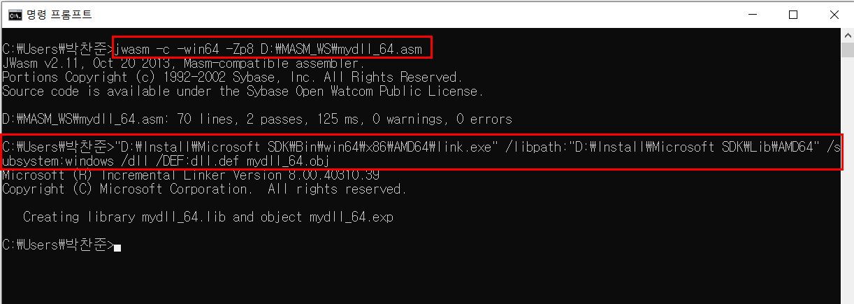이제 injector_64.asm 파일의 컴파일을 진행한다.