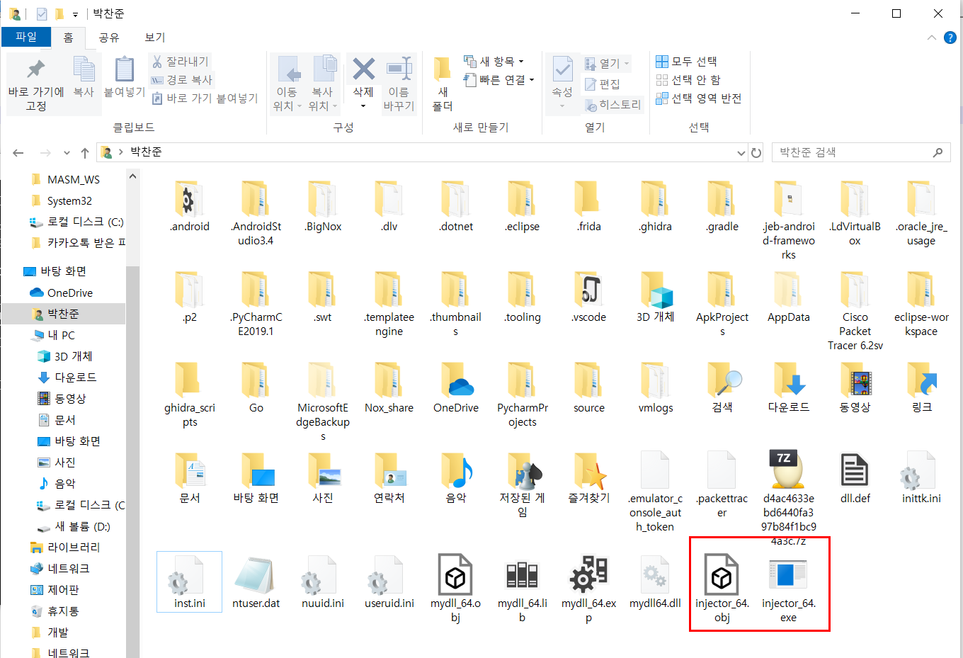 injector_64.asm 을 컴파일한 결과로 위 두가지 파일이 생성되는 것을 확인할 수 있다.