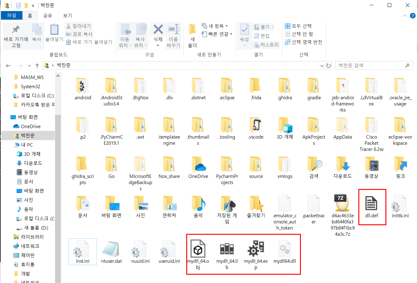 컴파일한 결과로 이와같은 파일들이 생성되는 것을 확인할 수 있다. (DLL, EXP, LIB)