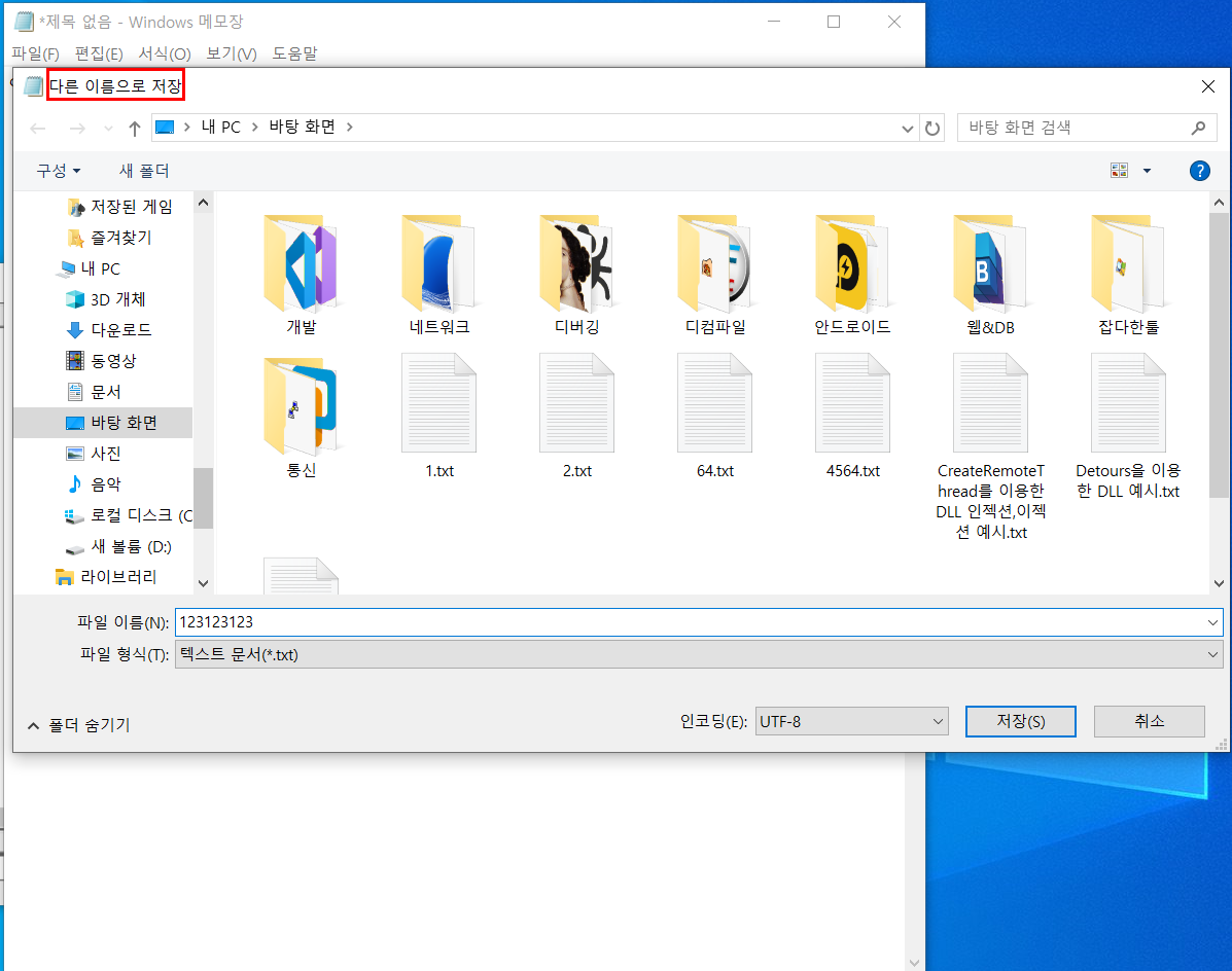 간단한 내용을 입력한 후 위와같이 파일을 저장해보자.