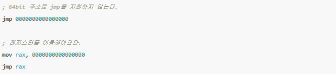 그러나 64비트에는 64bit 주소로 Jump를 지원하지 않는다.