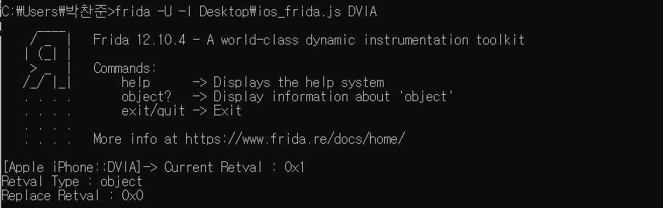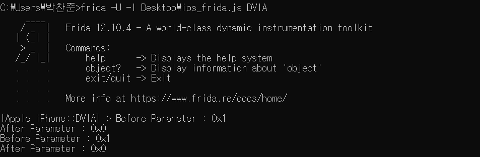물론 조금 더 우아한 방법을 사용할 수 있을 것이다. 그러나 IOS에 대해서 Frida를 처음 포스팅하는 것이기 때문에 가장 심플한 방법을 통해서 진행해봤다.