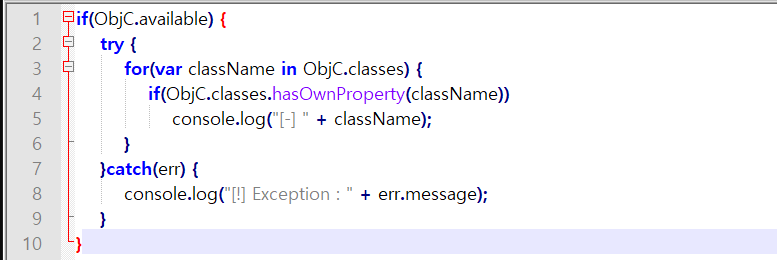 이와 같이 찾을 수 있다. 자세히 보면 함수명 앞 뒤에 특수문자들이 붙는데 이걸 반드시 포함하여 Frida 코드를 제작해야 한다. (이러한 부분에서 한번 Frida로 함수명을 출력해보는 것도 좋다.)