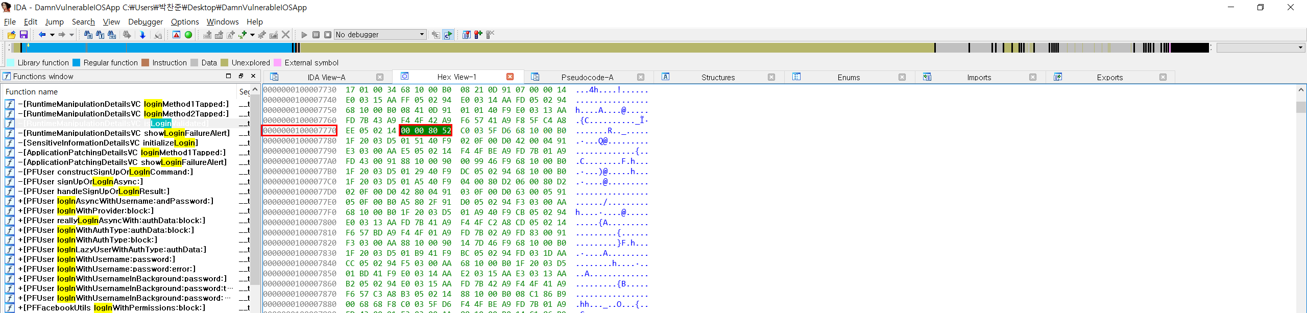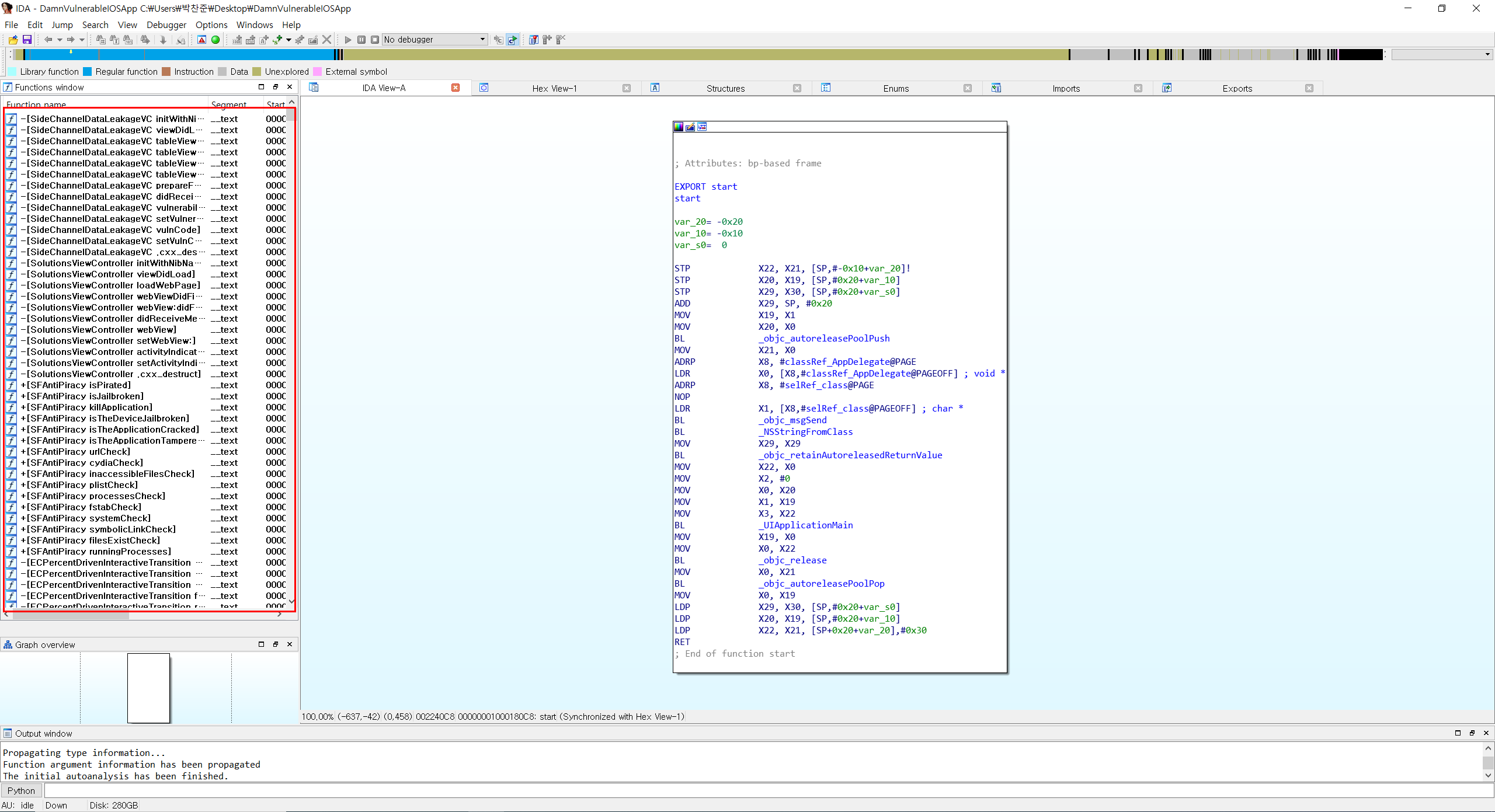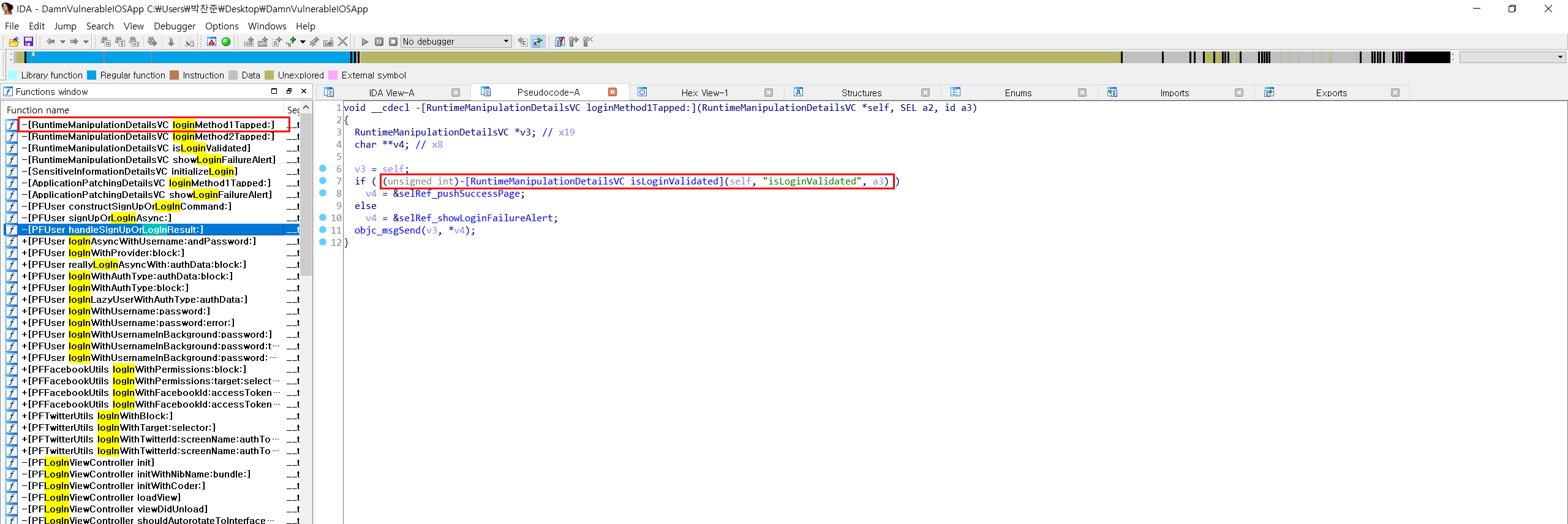 1. IPA 추출(Decrypt)후 Binary File을 IDA에 올린다.