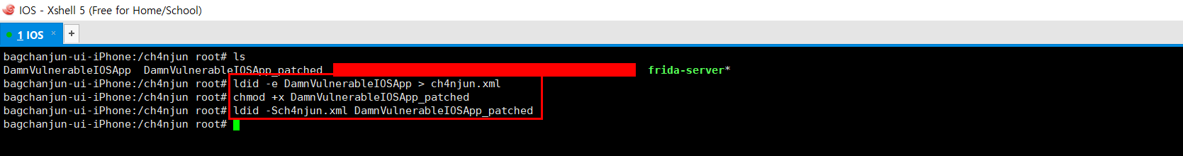 ldid -Sch4njun.xml [수정된 Binary File]