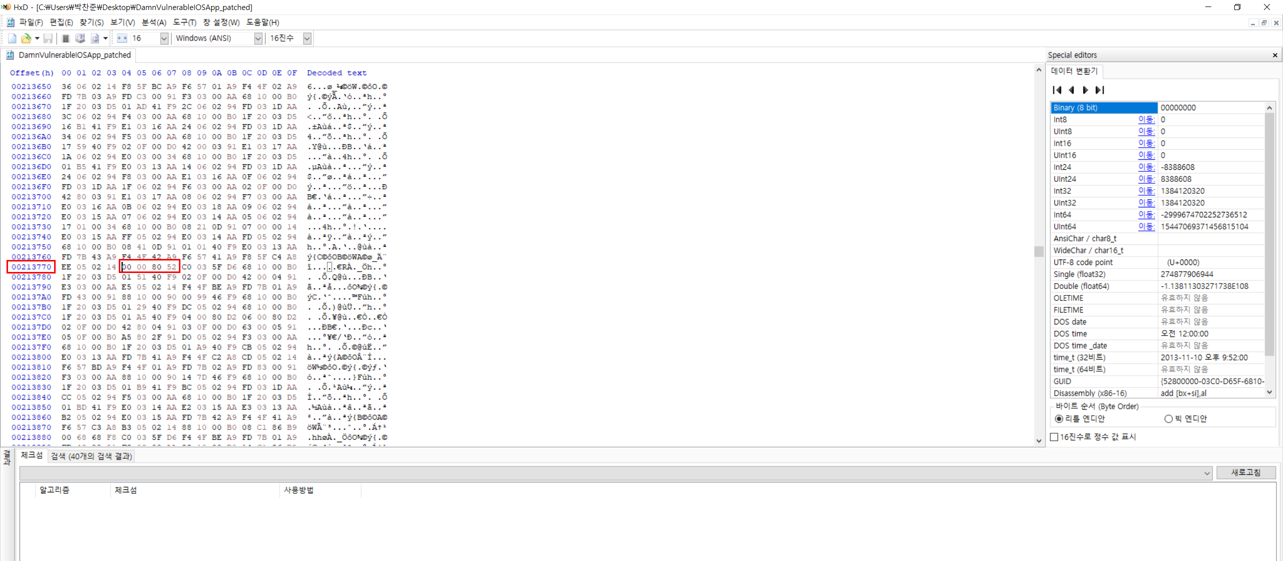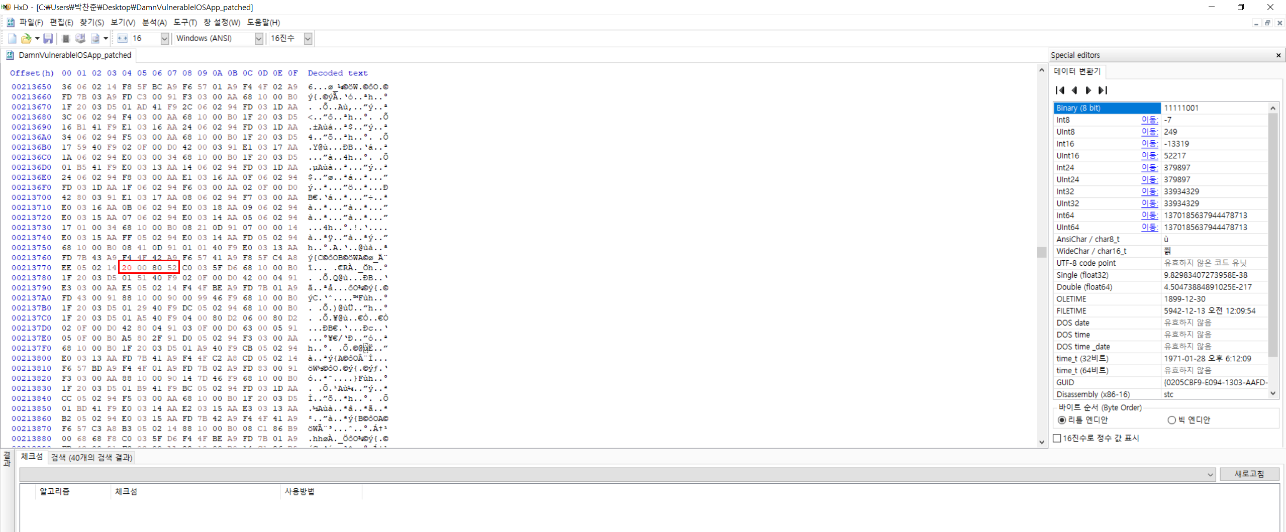 5. 3번에서 구한 HEX값을 해당 위치에 덮어써서 Patch를 진행한다.