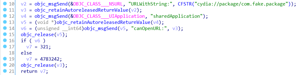 ( cydia:// 로 시작하는 URL은 탈옥된 디바이스에서만 접속이 된다. )