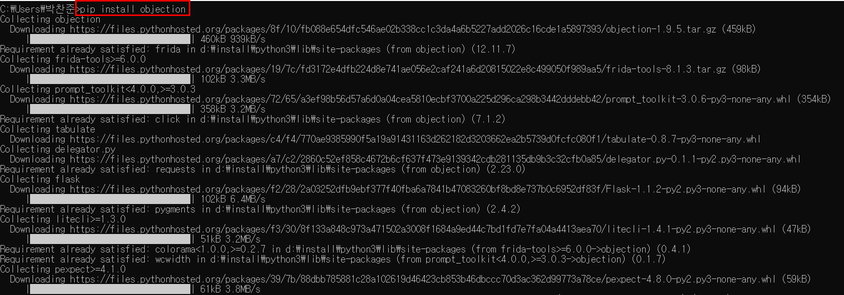 기본적으로 FRIDA를 기반으로 동작하기 때문에 당연히 FRIDA를 완벽하게 설치해야한다. 따로 git을 통해서 설치하는 것이 아니라 pip를 통해 설치가 가능해 편리하다.