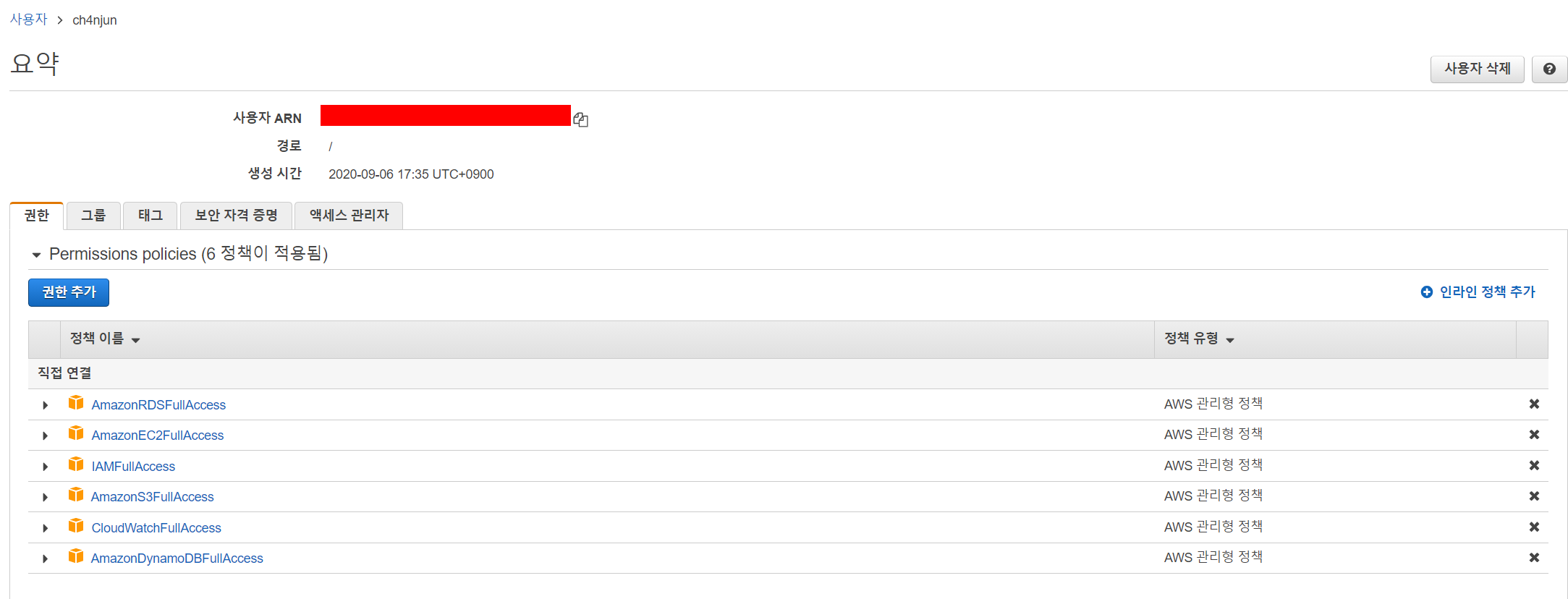 이제 해당 IAM 사용자에게 권한을 부여한다.