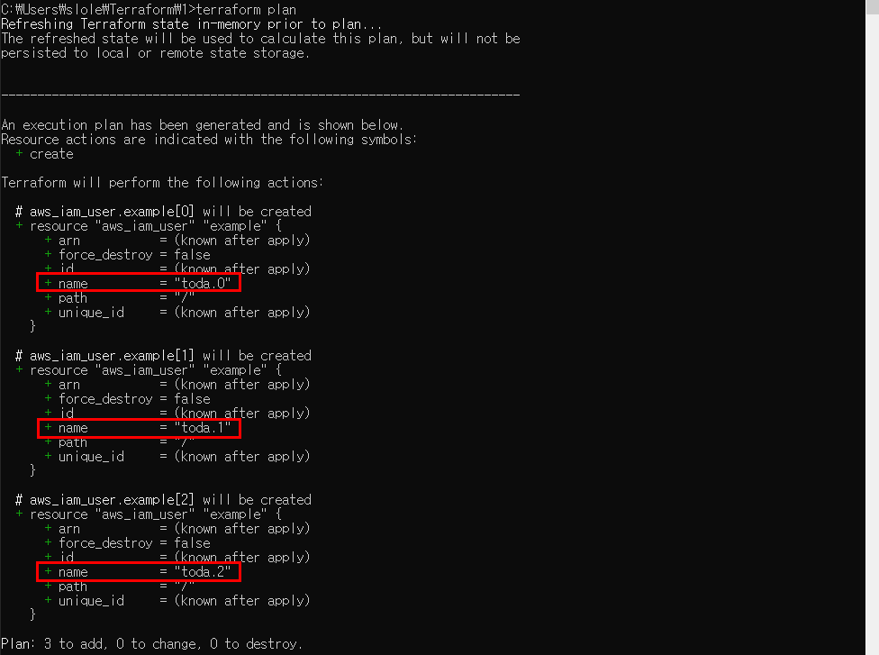 aws_iam_user.example은 리소스 목록이 되며 aws_iam_user.axample.[Index] 와 같이 항목에 접근