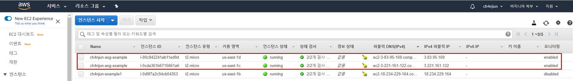 이 사진에서 ASG에 의해 2개의 EC2 Instance가 생성된 것을 확인할 수 있다.