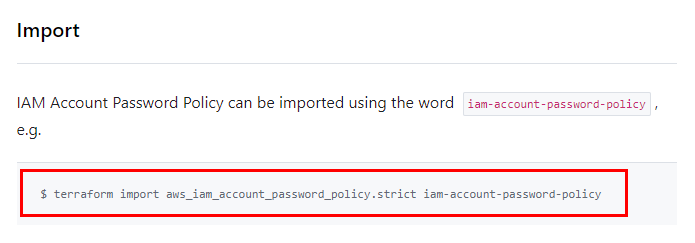 마찬가지로 Terraform Docs에서 Import할 때 사용하는 명령어 포맷을 확인할 수 있다.