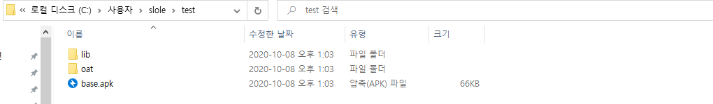 base.apk를 직접 지정해서 가져올수도 있지만 나는 저 디렉토리 전체를 가져왔다.