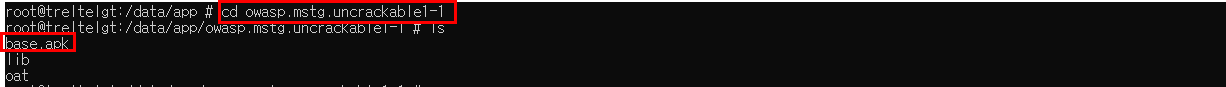 (/data/app/owasp.mstg.uncrackable1-1/base.apk)