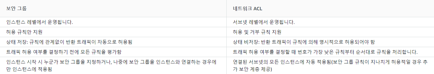 보안그룹 및 네트워크 ACL 비교