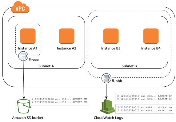 Amazon S3에 게시하는 경우 흐름 로그 데이터가 지정해 놓은 기존 Amazon S3 Bucket에 저장된다. 모니터링된 모든 네트워크 인터페이스에 대한 흐름 로그 레코드는 Bucket에 젖아된 일련의 로그파일 객체에 저장된다. 흐름 로그가 VPC에 대한 데이터를 캡처하면, 흐름 로그가 모든 네트워크 인터페이스에 대한 흐름 로그 레코드를 선택된 VPC에 게시한다.
