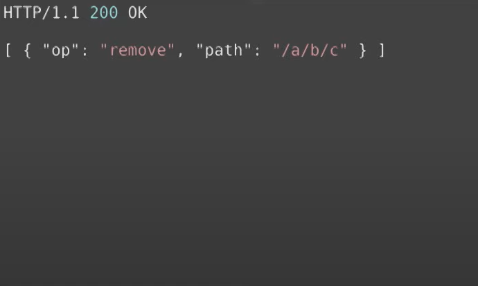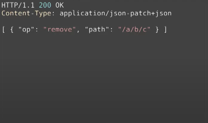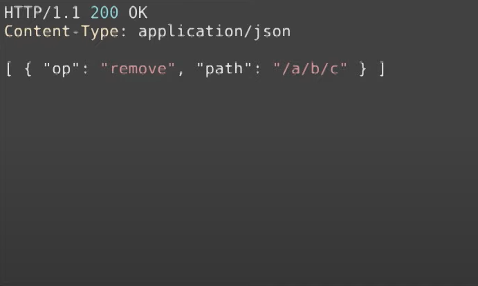 아니다. 왜냐하면, "op", "path" key값이 각각 무엇을 의미하는지 해석할 수 없기 때문이다. 따라서 다음 사진과 같이 해당 JSON에 대한 명세를 추가해 "op" key값의 의미는 무엇이고, "path" key값의 의미는 무엇인지 알 수 있도록 해줘야 이 메시지는 Self-dscriptive message라고 할 수 있다.
