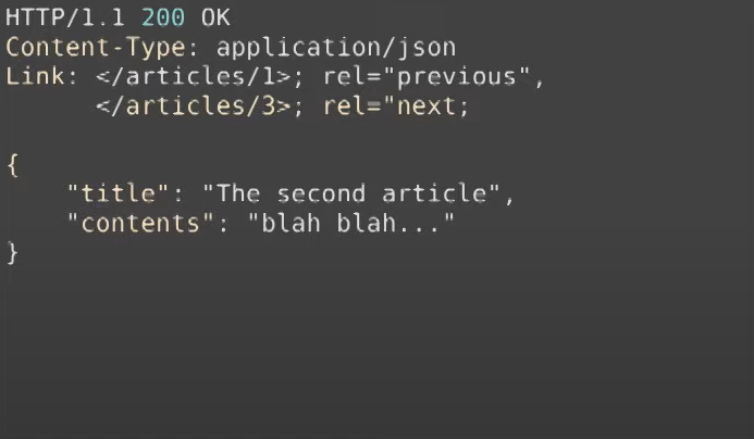 HATEOAS는 HTTP 헤더나 본문에 링크를 담아 만족시킬 수 있다.