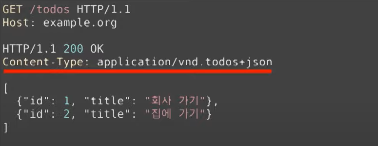 따라서 다음 사진과 같이 해당 메시지가 JSON 형태의 메시지임을 알려야 한다. 그렇다면 이 메시지는 Self-descriptive message일까?