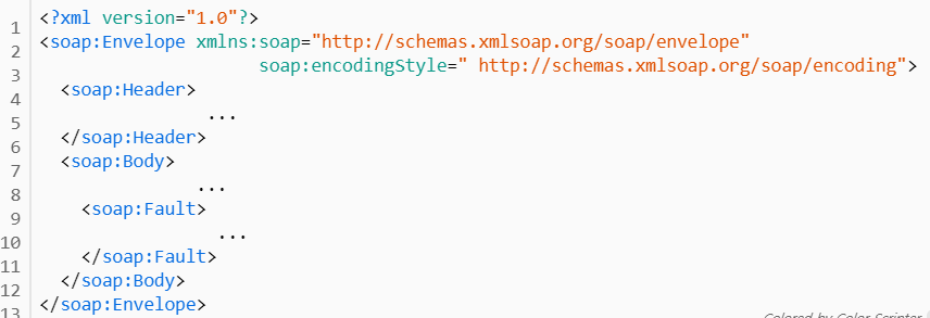 이러한 SOAP 에서 사용하는 메시지의 구조는 다음과 같다.
