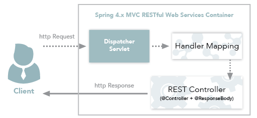 - Mapping되는 RestController는 해당 Request를 처리하고 JSON과 같은 데이터를 Client에게 반환한다.