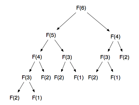 위 사진은 피보나치 수열의 값을 재귀함수를 통해 구할 때 거치게되는 노드 트리이다. 여기서 확인할 수 있는 점은 반복된 함수를 여러번 호출한다는 것이다. 예를 들어서 F(1) 함수는 총 3번 호출하는데 이 결과는 항상 똑같다.