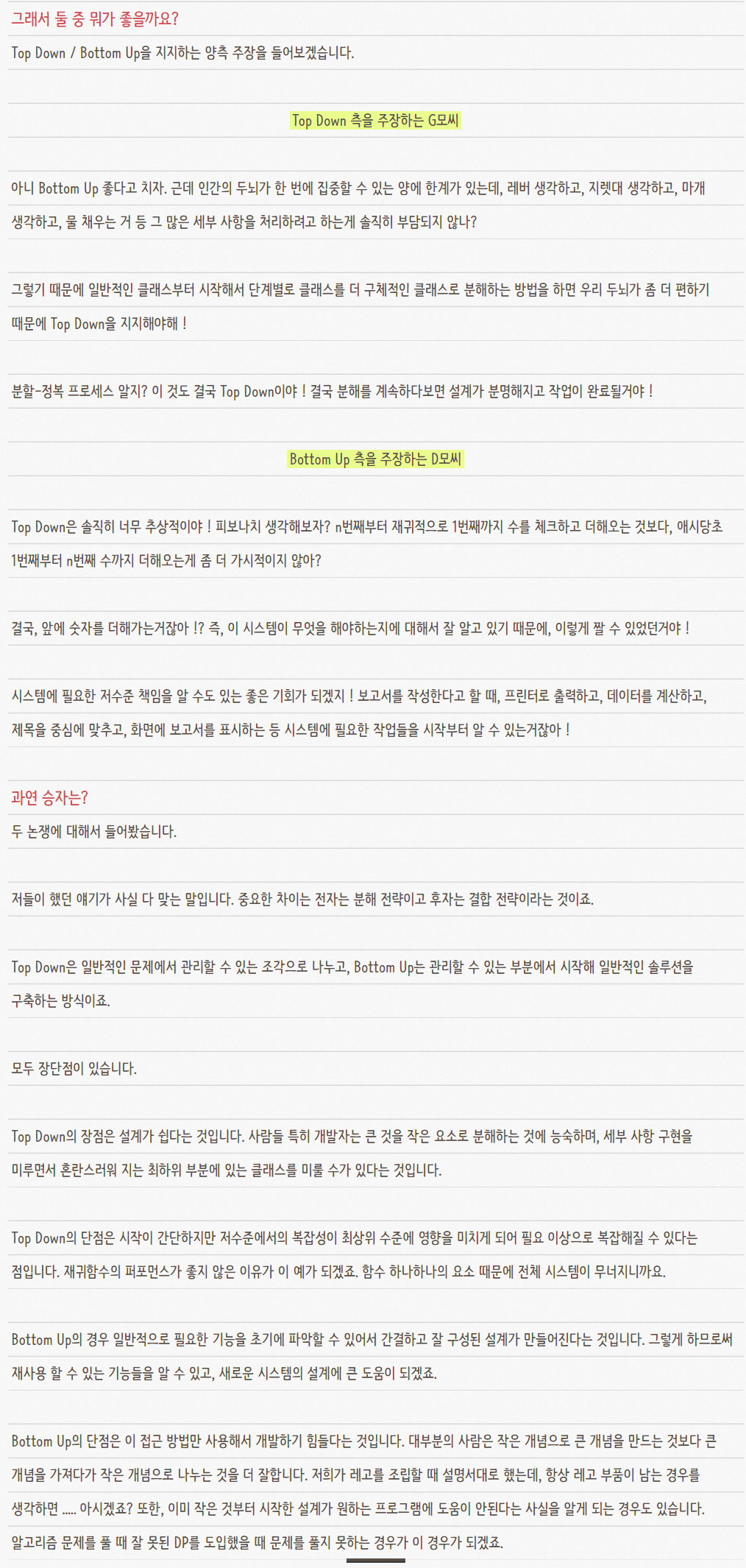 위 코드가 Top-down 방식을 이용한 해결 코드이다.