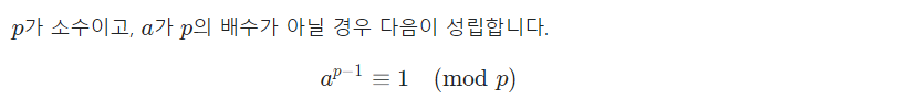페르마의 소정리는 자세히 설명하기 보다 문제를 풀며 필요했던 케이스에 대해서만 설명해본다. 우선 위에 15번에서 나머지를 분배하는 방법에 대해서 말했는데, (A * B * C) % m 이 아니라 (A / (B * C)) % m 의 경우에는 위 분배식이 성립하지 않는다.