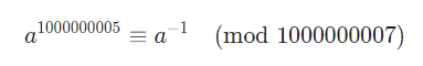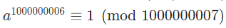 위는 기본적인 페르마의 소정리의 정의이다. 즉 p가 1000000007 이라고 했을 때 다음 식이 성립한다.