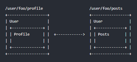 이 상태에서 /user/:id/posts 로 이동하게 되면 UserProfile 컴포넌트 자리를 UserPosts 컴포넌트로 대체하게 된다. 참고로, 변경되는 컴포넌트는 이것 뿐이니 User 컴포넌트는 다시 불러오지 않는다.
