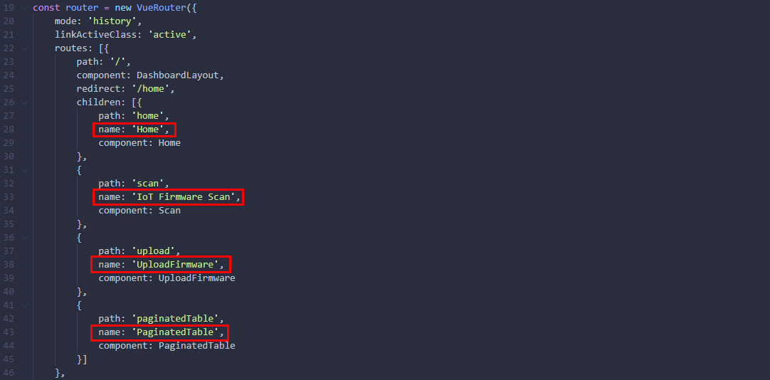 위 예시코드처럼 <router-view> 태그에 이름을 부여할 수 있고, 부여하지 않은 태그에 대해서는 default로 접근할 수 있다. 그러면 router 객체를 생성해보자.