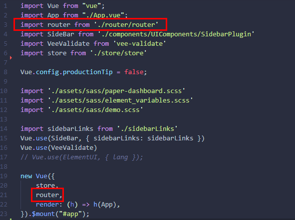 이렇게 export한 router를 main.ts파일에서 import해 애플리케이션에 router를 주입하자. (이렇게 주입하면 컴포넌트 어디서든 this 객체를 통해 접근할 수 있기 때문에 편리하다.)
