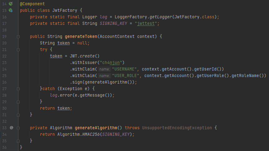 추가로 JWT 토큰을 발급하기 위한 Factory와 전달받은 JWT 토큰을 디코딩하고 검증하기 위한 Decoder 를 구현해야 한다. 그러면 차례대로 구현하며 자세한 부분을 설명하도록 한다.