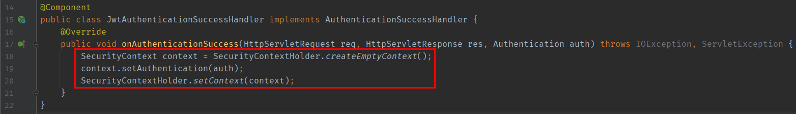 인증이 성공한 경우 인증된 정보를 SecurityContext에 저장해야 한다. 이정도만 기억하고 일단 이 포스팅에서 중요한건 이게 아니기 때문에 넘어간다.
