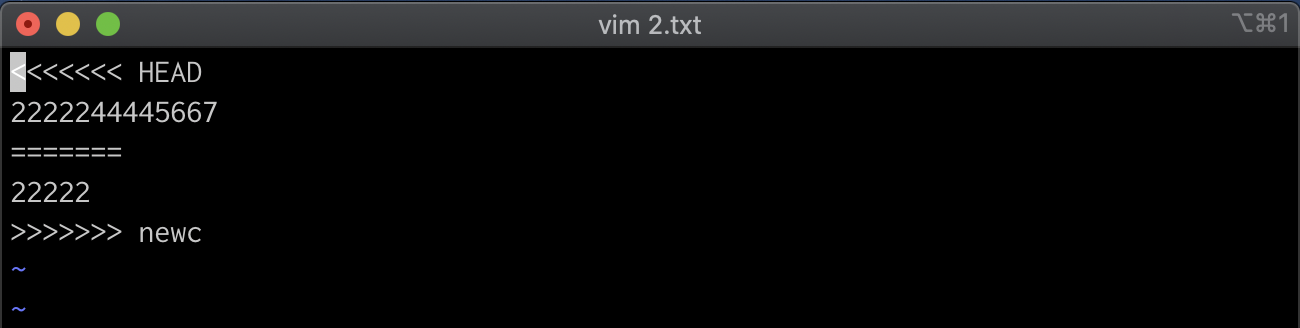 Conflict 는 별도의 명령어가 아니라 위에서 설명한 충돌을 의미한다. Conflict 가 발생하면 아래와 같이 표현된다.