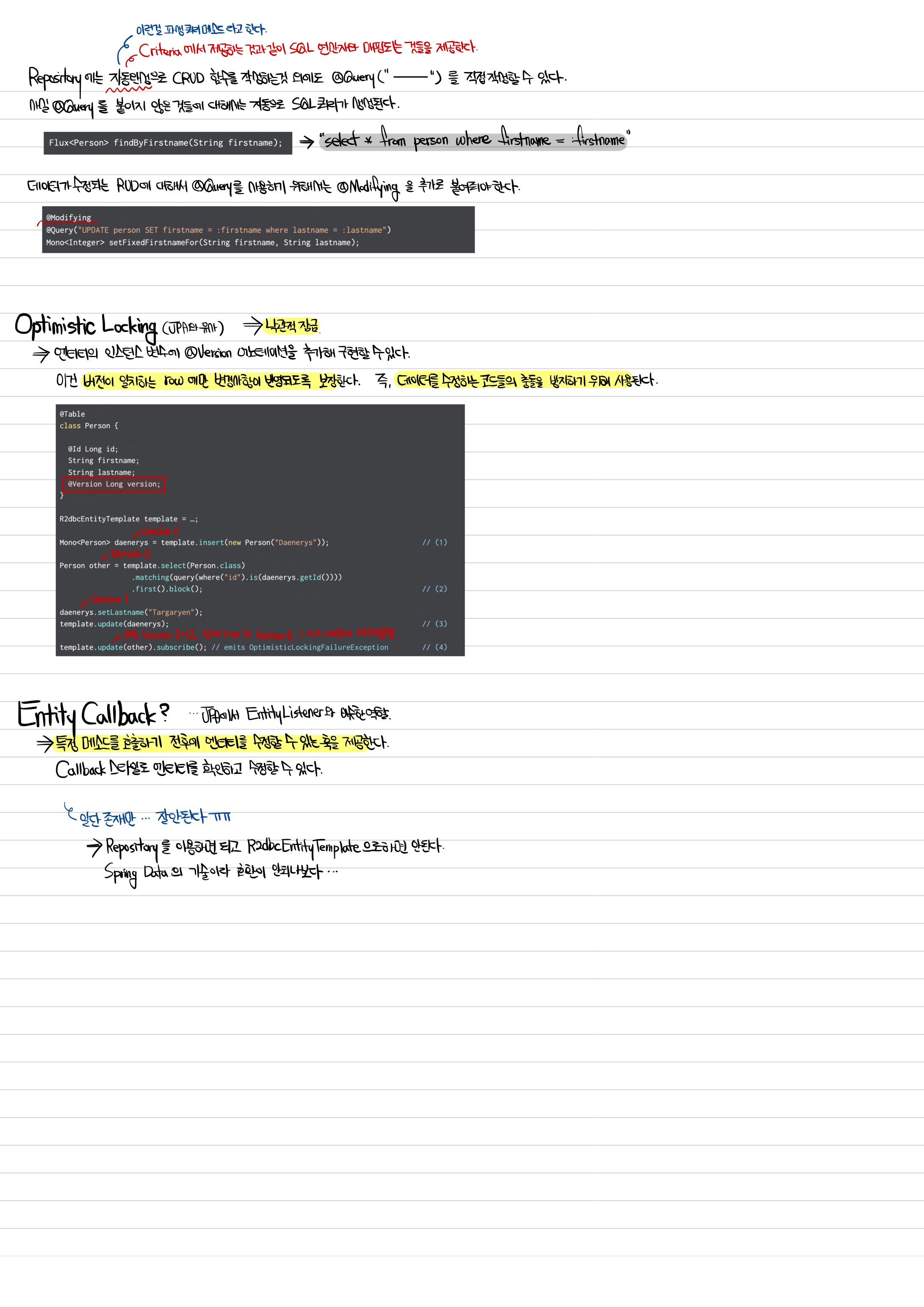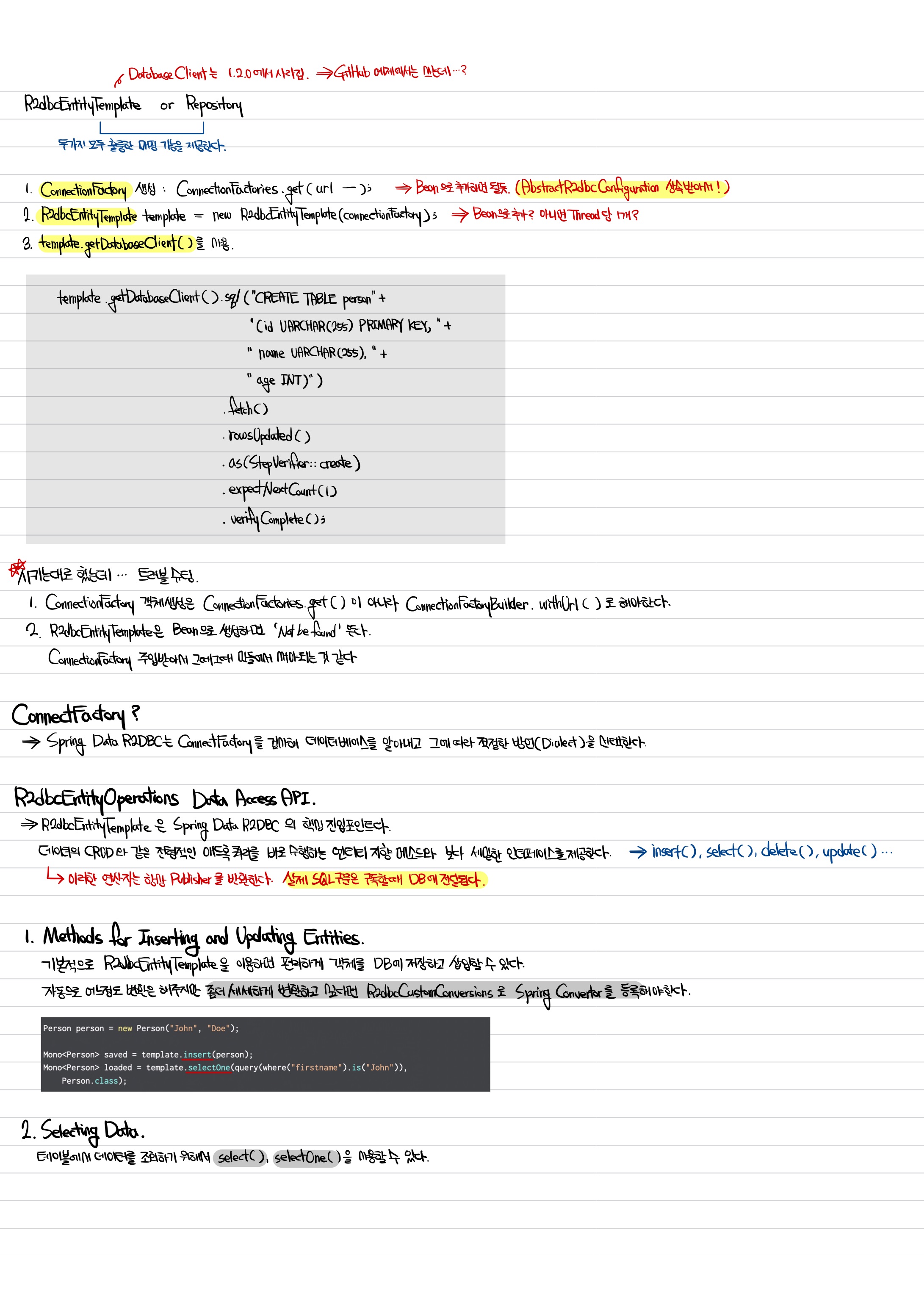 사실상 Spring Data 에서 제공해주는 Repository 를 이용하거나 R2dbcEntityTemplate 을 이용하는 방법중에 선택해서 사용하면 된다. Repository 를 이용하면 Spring Data 의 기술인 EntityCallback, CustomConverter 등의 이용이 가능하다는 장점이 있다.