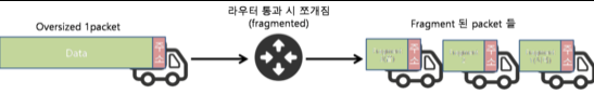 라우터가 판단해서 보내려는 패킷의 크기가 출력측 LAN, 통신회선이 처리할 수 있는 크기보다 크다면 IP 패킷을 나누어서 전송하게 된다.