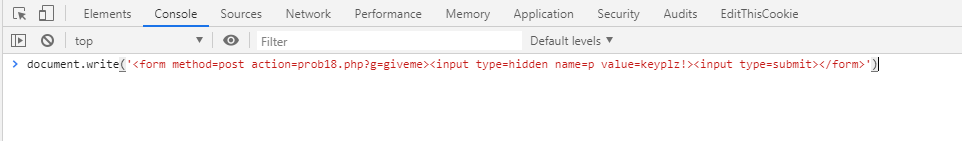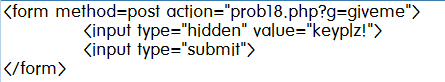 http://xcz.kr/START/prob/prob18.php 의 POST 파라미터로 'p'='keyplz!' 넘겨주기 !