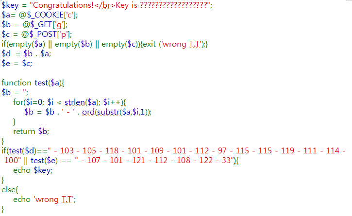 코드를 살펴보면 COOKIE에서 c라는 이름을 가진놈의 value를 $a에 저장하고,