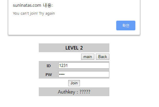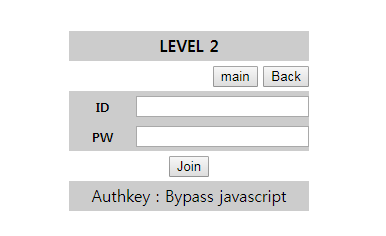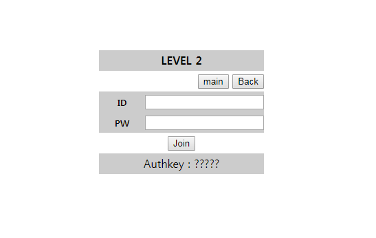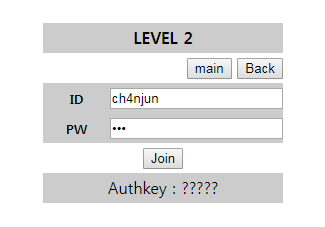 문제에 들어오면 ID와 PW를 입력할 수 있는 칸이나오고 Join버튼을 누를 수 있게 되어있다.