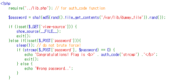 PHP5에서 발생하는 취약점으로 예를들면 아래와 같은 소스코드에서 인증을 우회할 수 있다.