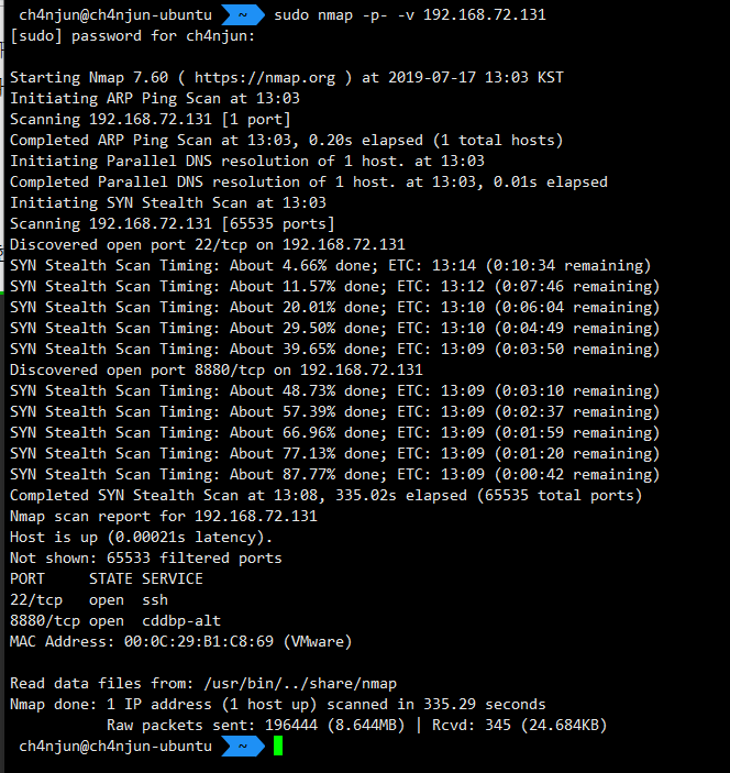 ( nmap -p- -v 192.168.72.131 ) → 다소 시간이 걸린다.