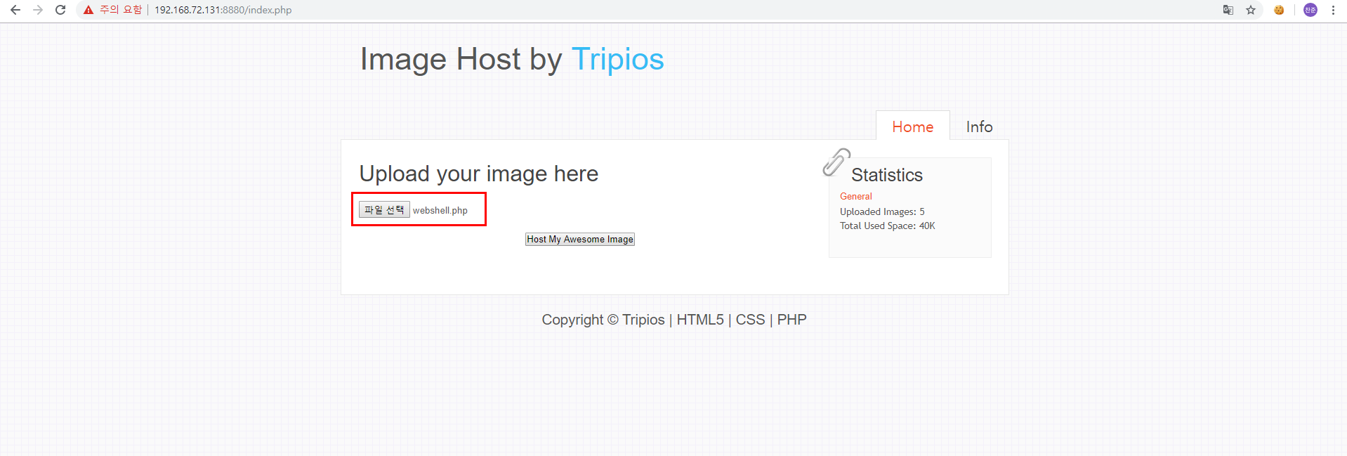 해당 웹서버는 이렇게 파일을 업로드할 수 있는 사이트이다.